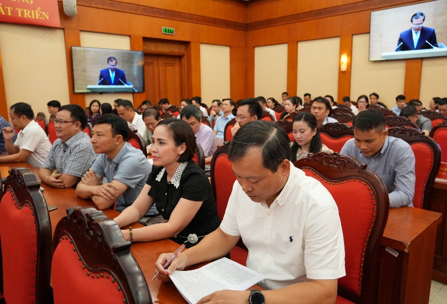 Trong chương trình Hội nghị, đồng chí Lê Hoài Trung, Bí thư Trung ương Đảng, Quyền Bộ trưởng Bộ Ngoại giao đã truyền đạt chuyên đề “Nội dung trọng tâm, cốt lõi của Nghị quyết số 59-NQ/TW, ngày 24/1/2025 của Bộ Chính trị về hội nhập quốc tế trong tình hình mới và Chương trình hành động thực hiện Nghị quyết số 59-NQ/TW”.