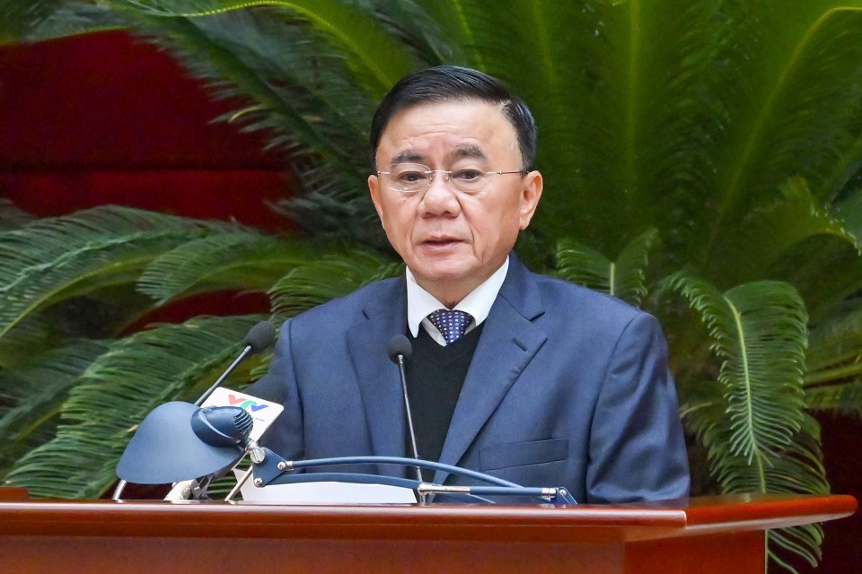 Đồng chí Trần Văn Rón, Ủy viên Trung ương Đảng, Phó Chủ nhiệm Thường trực Ủy ban Kiểm tra Trung ương trình bày Báo cáo kết quả công tác kiểm tra, giám sát và thi hành kỷ luật của Đảng nhiệm kỳ Đại hội XIII.