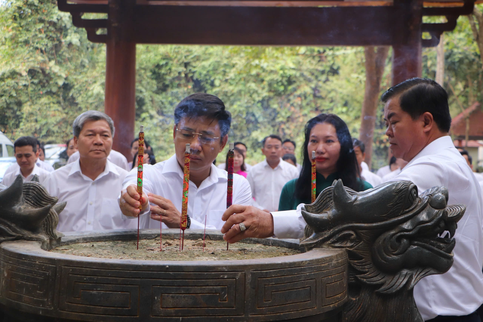 Đoàn dâng hương tại nhà Bia Ban Kiểm tra Trung ương Cục miền Nam