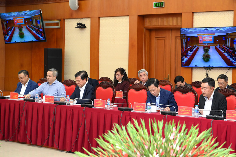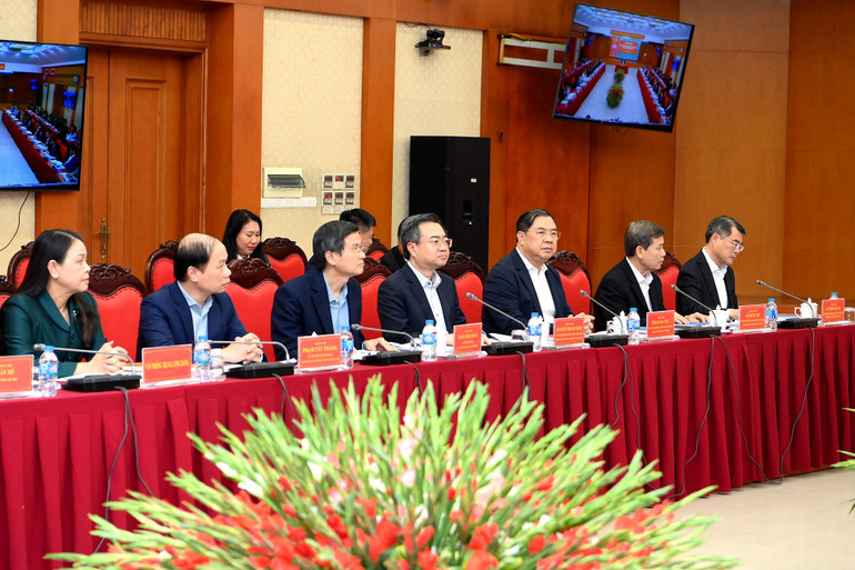 Dự buổi làm việc có các đồng chí Ủy viên Bộ Chính trị, Bí thư Trung ương Đảng: Lê Minh Hưng, Trưởng ban Tổ chức Trung ương; Lê Minh Trí, Trưởng ban Nội chính Trung ương; Nguyễn Thanh Nghị, Trưởng ban Chính sách, Chiến lược Trung ương; Phạm Gia Túc, Chánh Văn phòng Trung ương Đảng; đồng chí Đoàn Minh Huấn, Ủy viên Bộ Chính trị, Giám đốc Học viện Chính trị quốc gia Hồ Chí Minh; các đồng chí Ủy viên Trung ương Đảng; lãnh đạo các ban Đảng Trung ương, Văn phòng Trung ương Đảng.